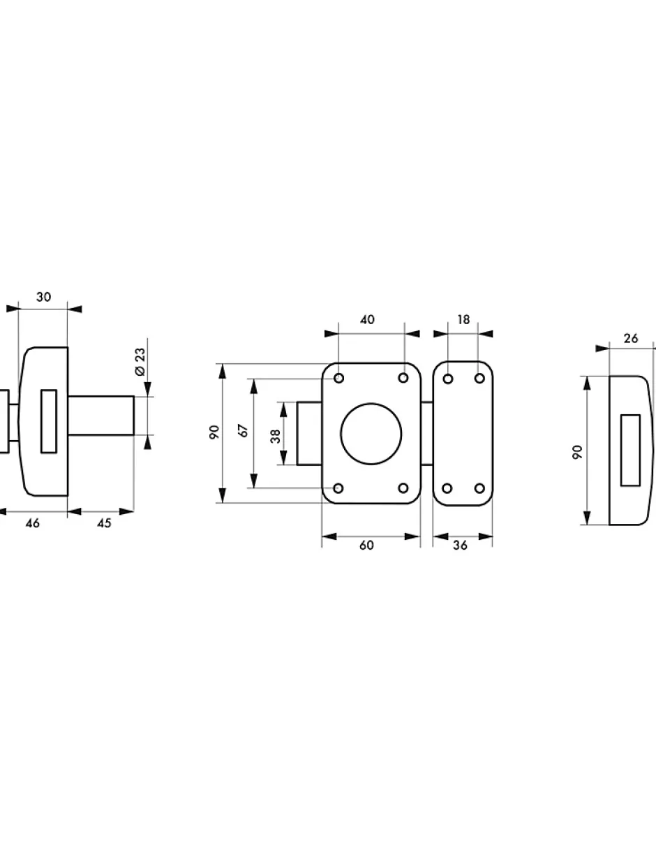 Lot de 2 verrous à bouton, cylindre Ø23 x 45 mm, s’entrouvrant, 3 clés crantées par verrou.