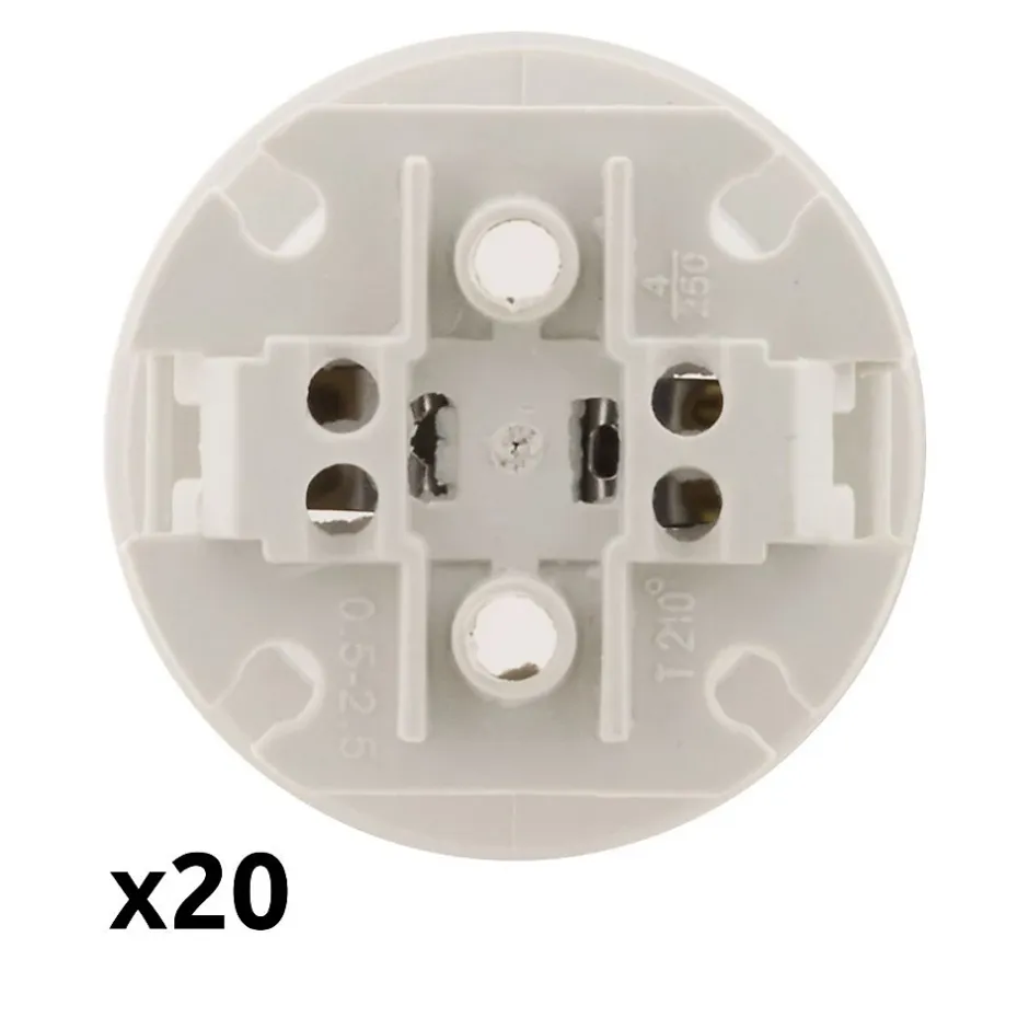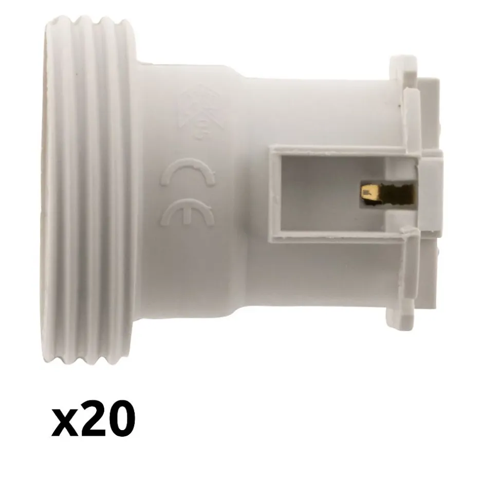Douille de chantier. Culot : E27 (gros culot à vis). Sans bague. Idéale pour installations temporaires ou environnements de chantier. Facile à raccorder. Matériau résistant pour usage intensif. En lot de 20, 40 ou 200