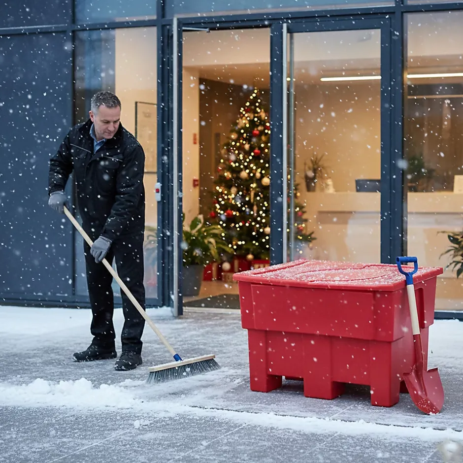 Bac à sable-sel-absorbants avec pelle d’une capacité de 300L pour déneigement- sécurité incendie ou stockage d’outillages en polyéthylène haute densité. Traité anti UV. Des clips intégrés dans le couvercle permettent de fixer une pelle. U n passage de fourches est prévu pour faciliter la mobilité du bac.Pelle ronde , manche en bois, tête et poignée en acier forgé à chaud avec traitement thermique finition peinture rouge non polluante. Couvercle pentu.Lot de 6 bacs.Capacité : 300LLongueur : 99 cmHauteur : 79 cmLargeur : 58.5 cm.Poids : 19.5 kgCouvercle pentuPour stockage de sel/sable/absorbantsMatière : polyéthylène haute densitéTrès résistant aux chocs. plage d’utilisation : -30°C à +60°C100% recyclableFabrication FrançaiseMarque : PLAST’UP ROTOMOULAGE