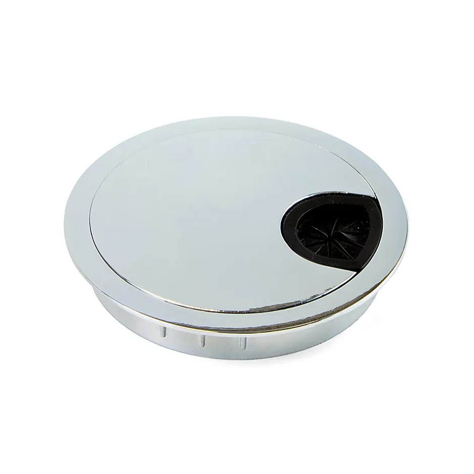 Passe-câbles circulaire pour encastrer sur la surface du meuble. Idéal pour les bureaux, les tables de travail ou les meubles de la maison, il dissimule les câbles des appareils électroniques. Son caoutchouc flexible permet de glisser les câbles et de dissimuler leur connexions. Accès à tout moment aux câbles en enlevant le couvercle avec une simple rotation. Le montage requiert au préalable d’un perçage de D.80 mm. Fixation par pression. Pour les câbles avec une grande prise il est recommandé de couper légèrement le caoutchouc. Fabriqué en zamak finition chromé. Chaque lot contient 7 unités. VOIR LES MESURES DU PRODUIT DANS LES IMAGES. Couvercle passe-câbles pour encastrer sur les meubles du bureau ou les tables de travail fabriqué en zamak. Dissimule les connexions facilement. Accès à tout moment aux câbles en enlevant le couvercle avec une simple rotation.