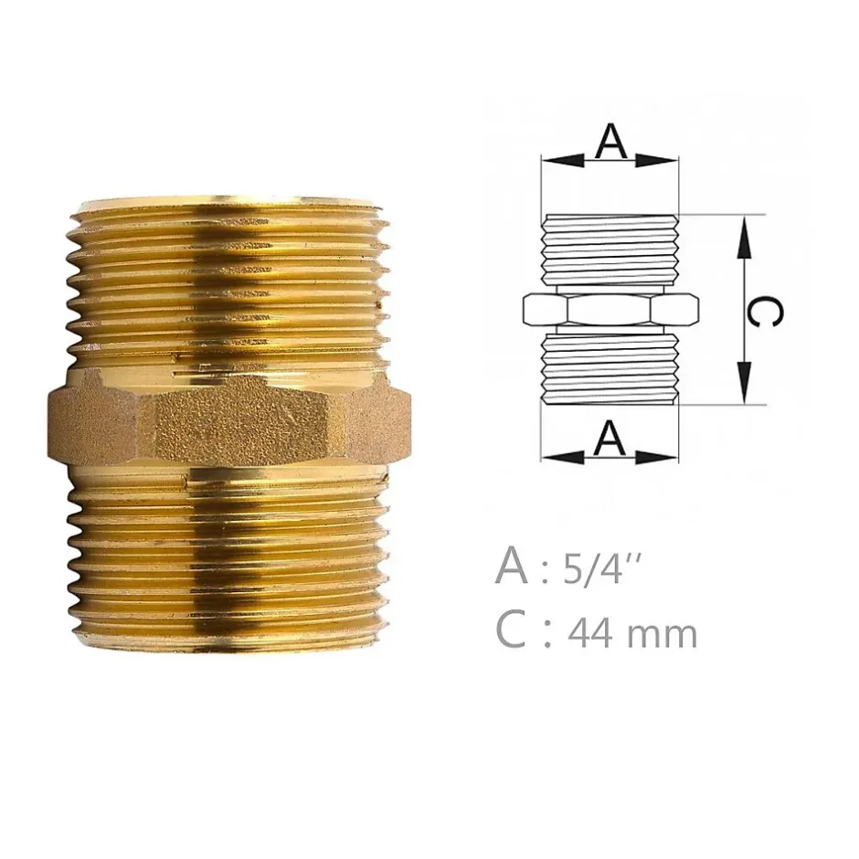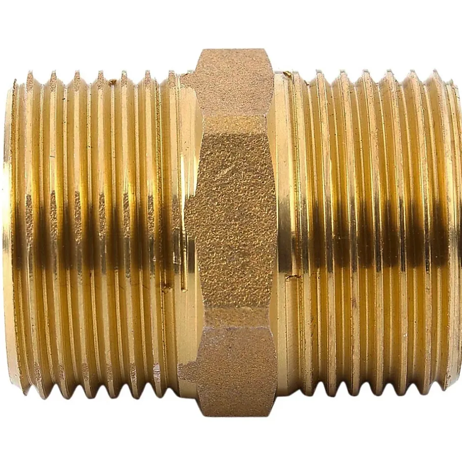 Mamelon laiton égal mâle mâle à visser Vendu à l’unité ou en lot de 5 et 10 pièces. Différents filetages disponibles : 3/8″, 1/2″, 3/4″, 1″, 5/4″. CARACTÉRISTIQUES : Mamelon égal en laiton raccordement mâle mâle à visser. Utilisé pour les travaux de plomberie, sanitaire et chauffage central. Différents filetages à disposition. À NOTER : pas de livraison en Corse ou sur les îles.