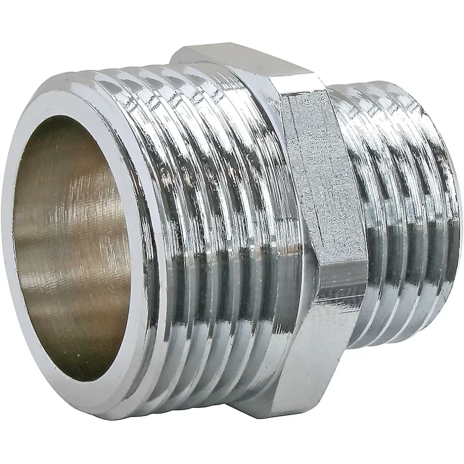 Mamelon réduit laiton chromé Mâle 15/21 (1/2″) – Mâle 12/17 (3/8″), lot de 2