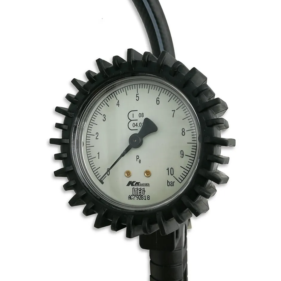Manomètre de gonflage sous forme de pistolet. Pression de 0 à 10 bars maxi.