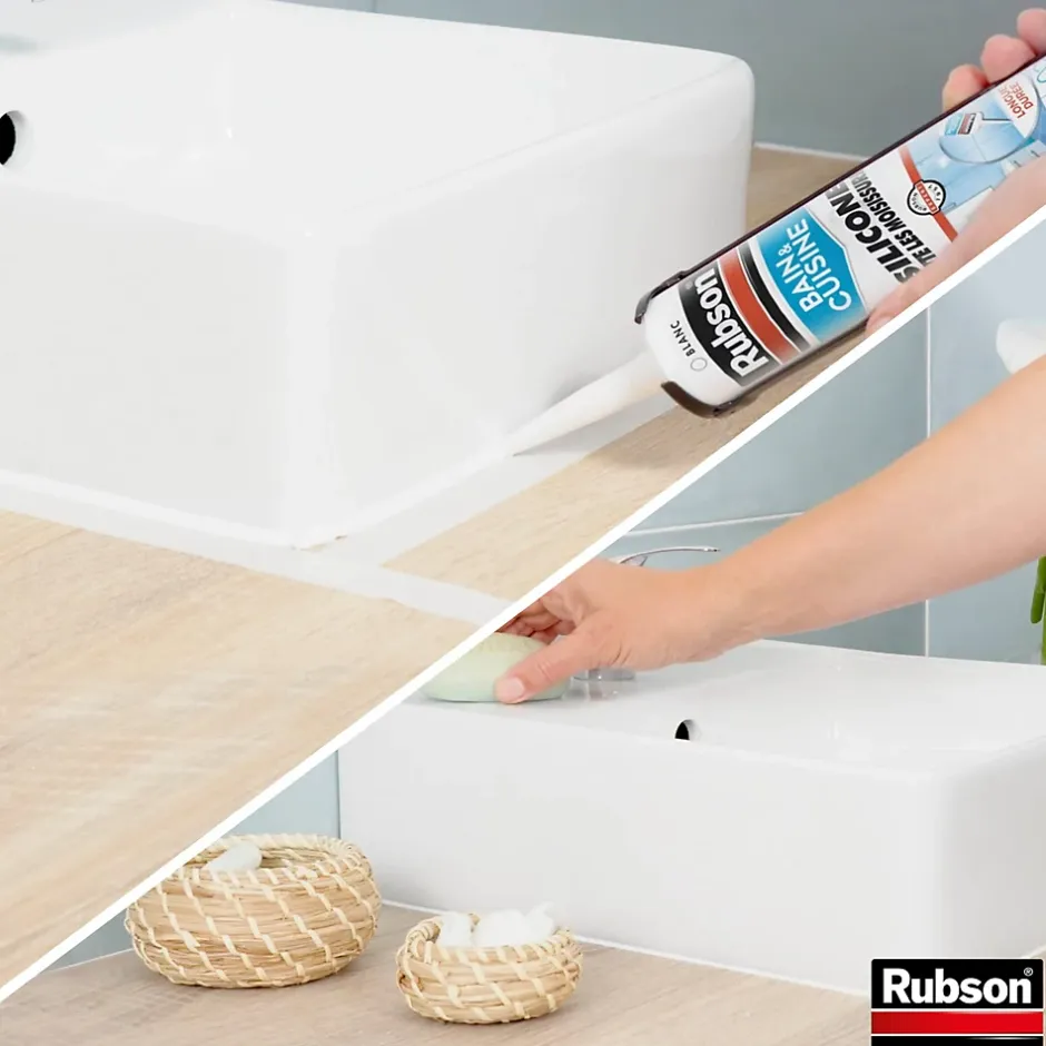 Mastic bain et cuisine Rubson blanc 2x280ml