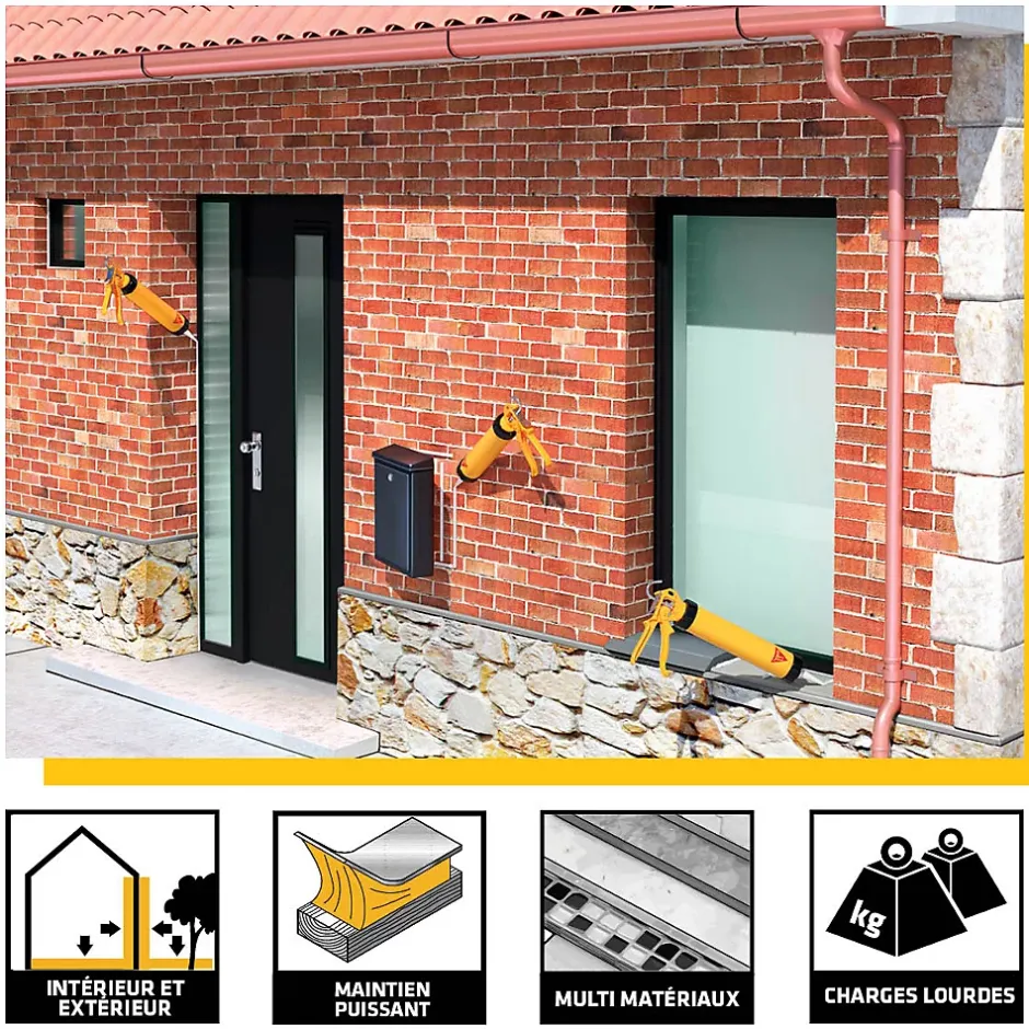 - BONNE ADHERENCE: adhère à la plupart des matériaux de construction
