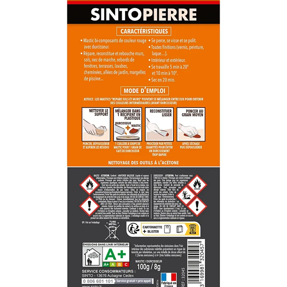 Mastic polyester Sintopierre rouge en tube de 66 ml