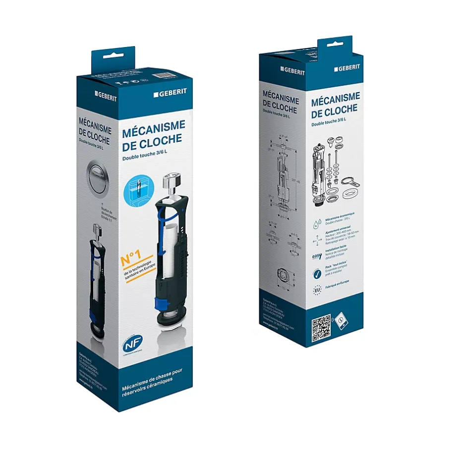 - Réglage possible des petit et grand volumes de chasse, selon le volume d’eau du réservoir