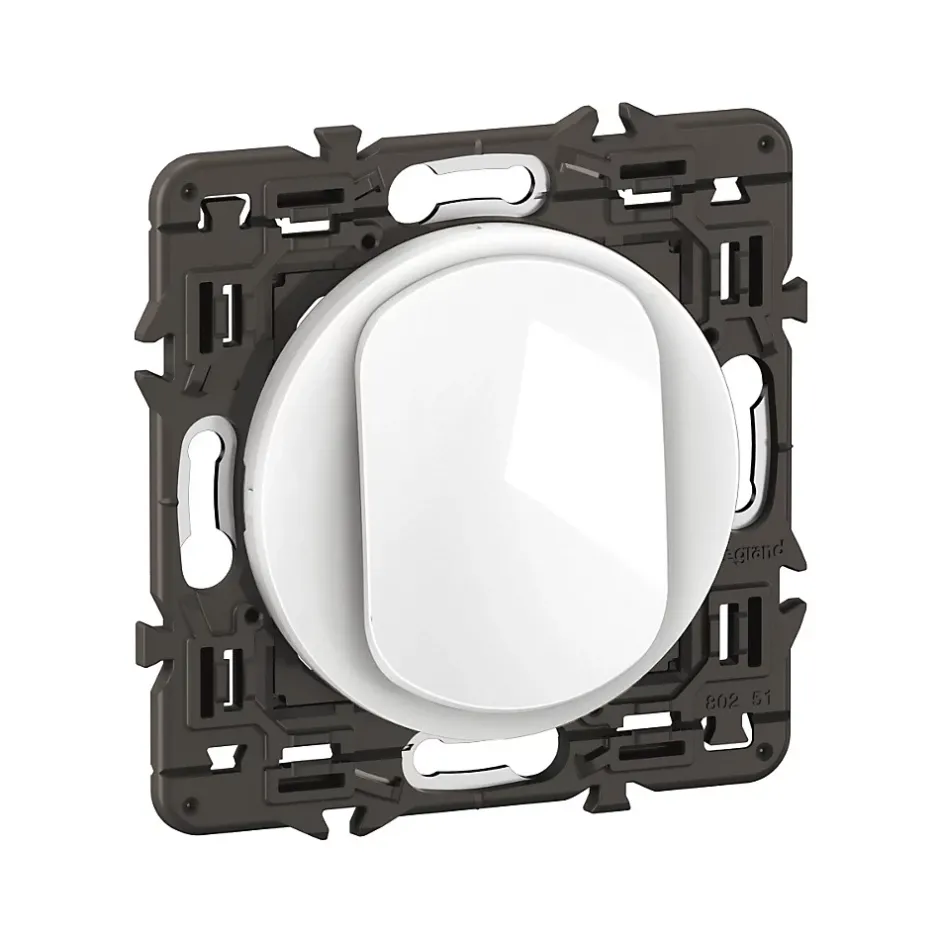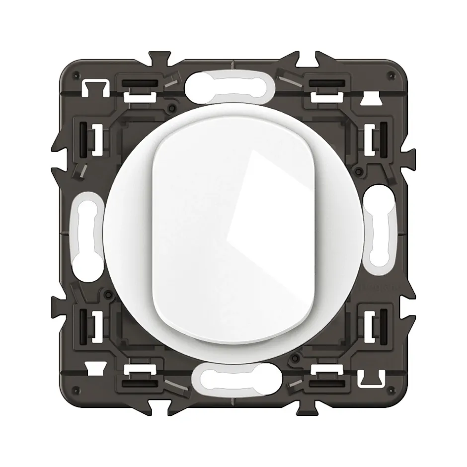 Poussoir inverseur contact NO-NF Céliane 6A – livré avec enjoliveur Blanc et support montés, à équiper d’une plaque de finition