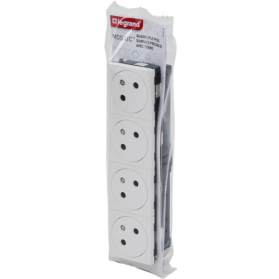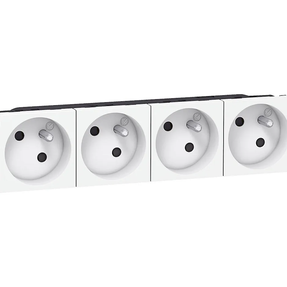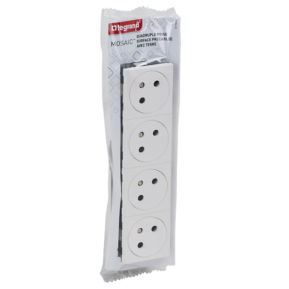 Mécanisme prise 2 pôles + terre Legrand Mosaïc blanc, 4 prises