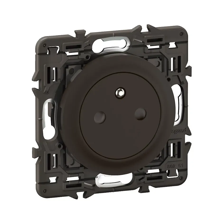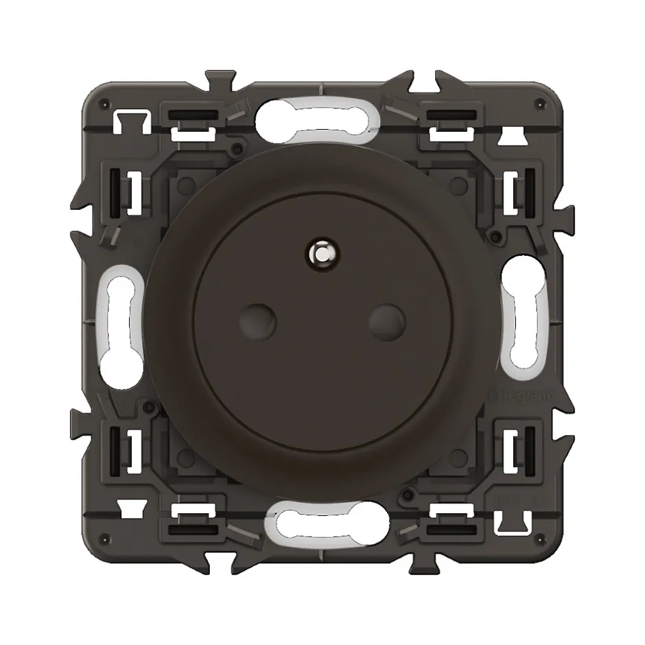 Mécanisme à associer aux plaques de finition LEGRAND Céliane. Fixation par vis dans boite d’encastrement profondeur 40 mm Prise 2P+T Surface Confort Céliane à bornes automatiques – livrée avec enjoliveur Noir et support montés, à équiper d’une plaque de finition