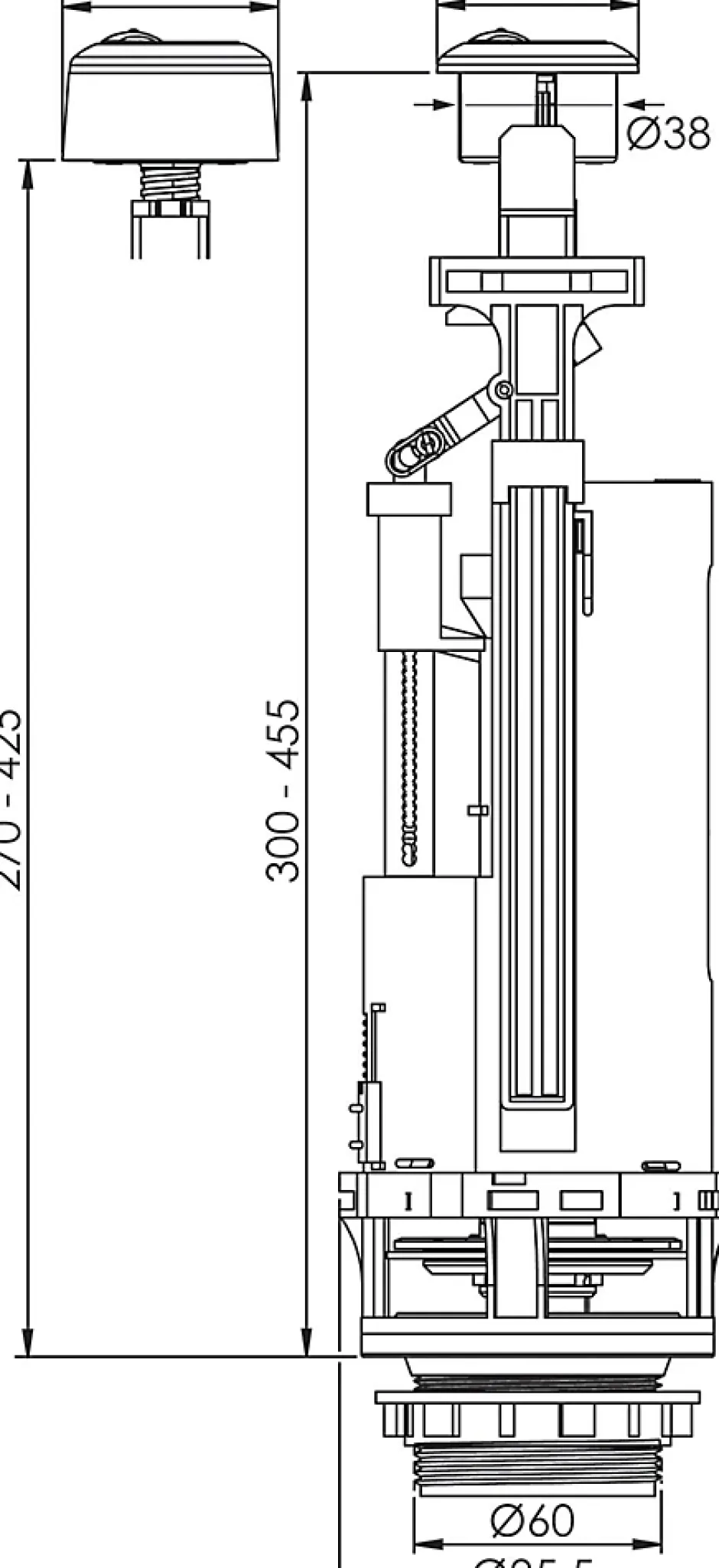 - Soupape à étrier à double poussoir NF pour WC. Trop-plein télescopique : sans découpe, réglable en hauteur de 190 à 300mm. Pour trou de couvercle de Ø15 à 38 mm. Niveau d’eau des chasses réglable 3 ou 6 litres. Joint silicone anti-corrosion et anti-calcaire. Joint de cuvette et fixation du réservoir fournis.