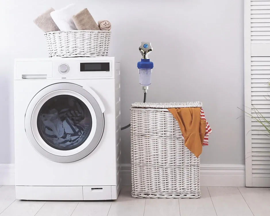 - Traite l’eau d’alimentation pour lave-linge Se place entre le robinet de machine à laver et le flexible d’alimentation du lave-linge