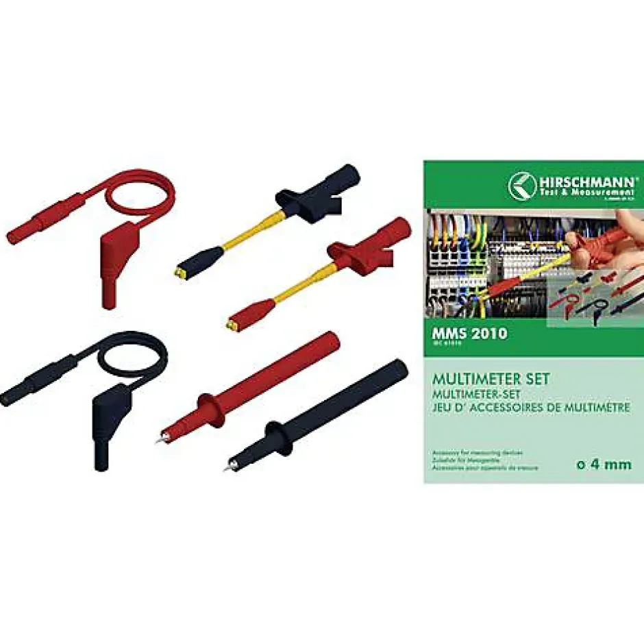 Set de cordons de mesure de sécurité Hirschmann MMS 2010, 2 x KLEPS 2800, 2 x PRUEF 2700, 2 x MLS WG 100/1, 1000 V CAT III, 16 A, câbles PVC 1 m, contacts Ni.