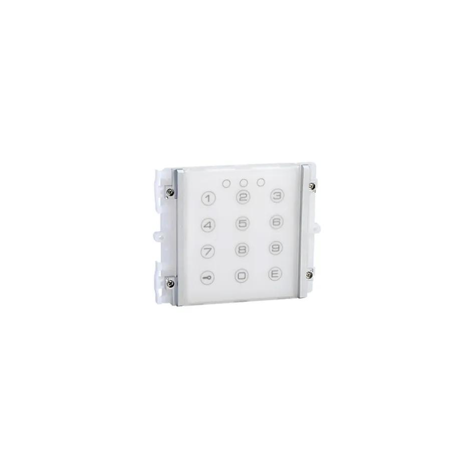 Module clavier à codes série IKALL – 3348B – COMELITLe module clavier à codes série IK 3348B COMELIT est conçu pour faciliter le contrôle de l’accès à un site. Il peut gérer 402 codes dont un supercode et un code d’anticoercition. Il peut également servir pour deux portes. La redistribution des 400 codes relais entre le relais 1 et le relais 2 est possible avec ce module clavier Comelit. Les sorties relais peuvent être en mode monostable ou bistable.Lors de la première programmation du supercode, il est recommandé de choisir un code facile à retenir et de le noter. En effet, cette opération s’effectue dans un temps limité. Au moindre retard, il faut recommencer la procédure. Assurez-vous donc de bien connaître toutes les étapes de la mise en marche de votre module clavier à codes série IK avant de commencer la programmation.Côté esthétique, ce module clavier à codes série IK est élégant avec sa couleur blanche et son clavier rétroéclairé bleu et blanc. Ses dimensions de 112 x 89,5 x 40 mm en font un dispositif compact, mais pratique à utiliser.Pour les caractéristiques électriques de ce module clavier à codes série IKALL, une alimentation de 12 V en AC/DC est nécessaire. Toutefois, si vous souhaitez le connecter à un système Simplebus, vous pouvez utiliser le connecteur B dans le dos du module. Enfin, la consommation électrique de celui-ci est évaluée à 250 mA quand les 2 relais sont actifs.Caractéristiques principales :Type d’accessoire : module clavier à codes série IKALLTension d’alimentation : 12 V DC/12 V AC (stand-alone) / simplebusMatériau de construction : plastiqueCompatibilité : système audio/vidéo Simplebus 2, système audio/vidéo Building kit, sysytème contrôle d’accès.Montage / Installation : montage à encastrementTempérature de fonctionnement : -25 ° à 55 ° CDimension : 112 x 89,5 x 40 mm