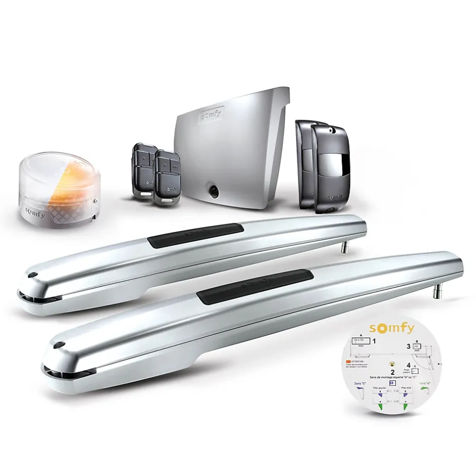 - Nouveauté 2023 : Ce pack inclut des pattes de fixation compatibles avec les piliers étroits jusqu’à minimum 7cm de largeur (ou min 10 cm si les butées mécaniques d’ouverture du moteur sont utilisées)