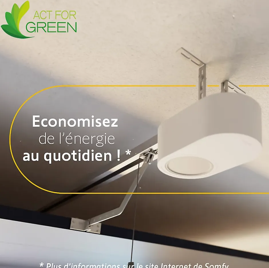 - Sécurité : le moteur intègre une détection d’obstacle et stoppe la course de la porte de garage lorsqu’un obstacle est détecté.