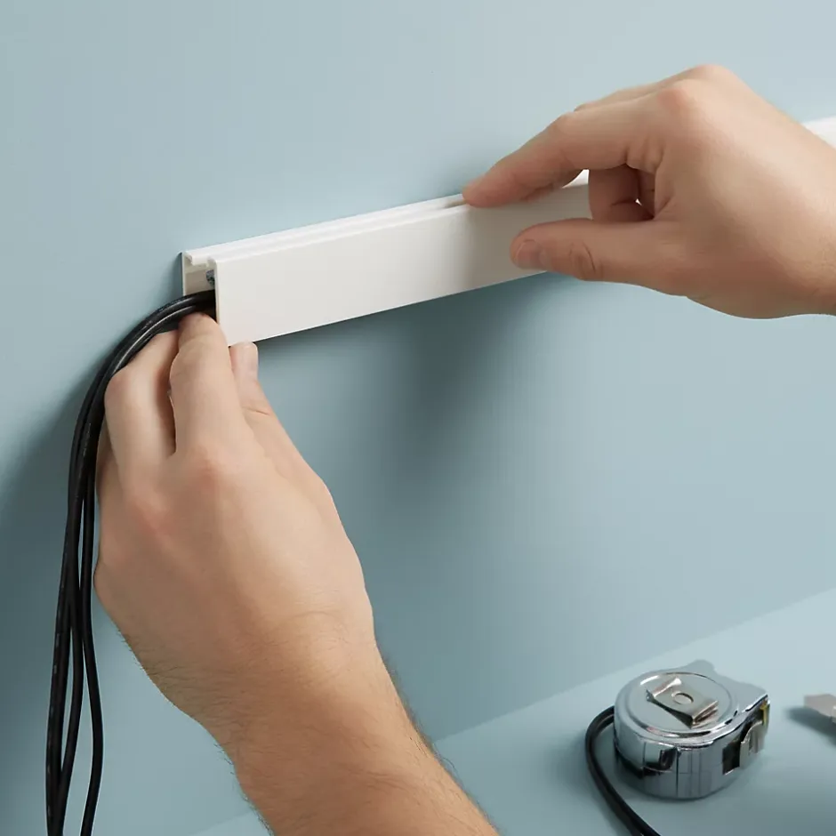 Moulure électrique blanche pour passage de câbles et fils en saillie.