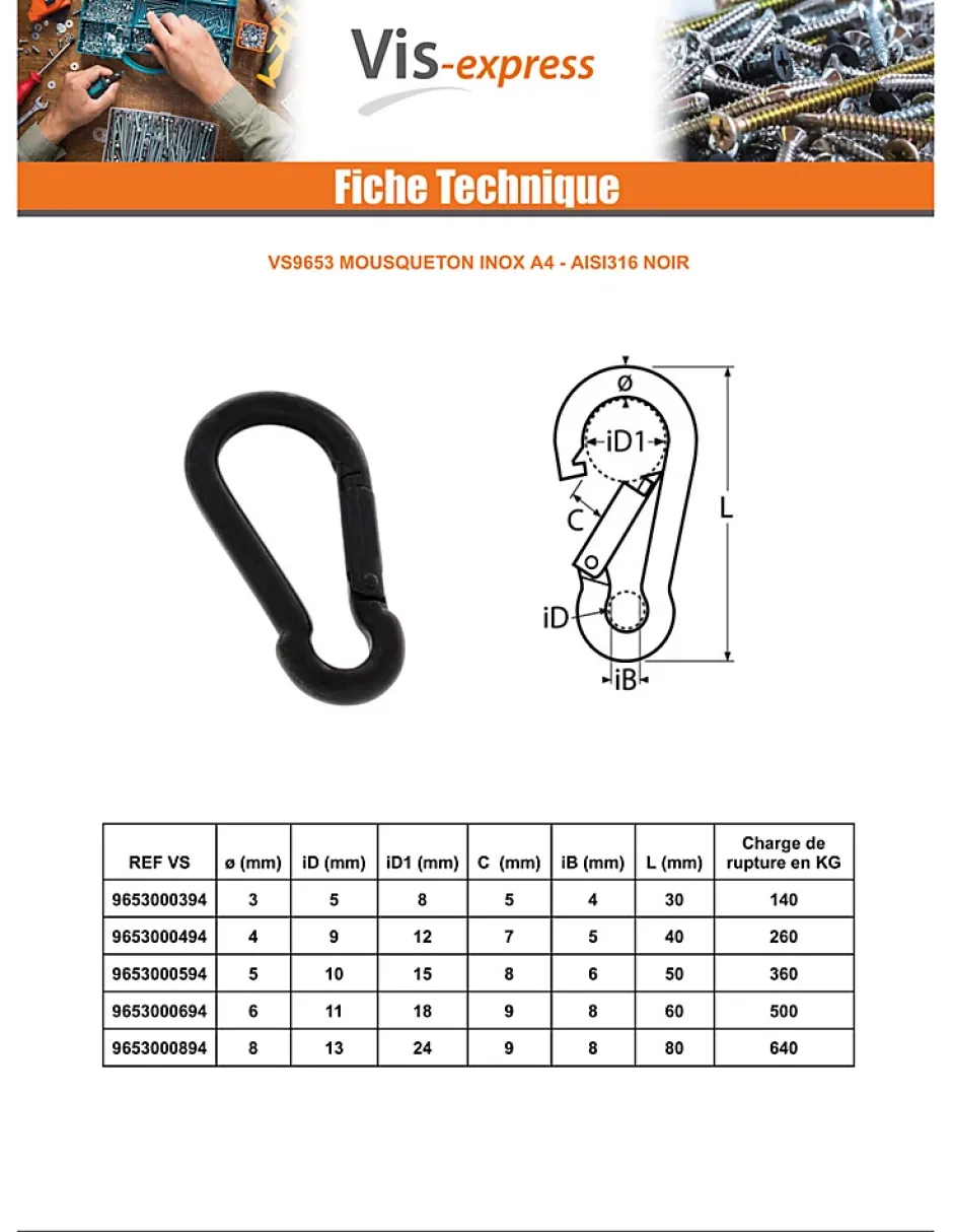 Mousqueton Inox A4 Noir Diamètre 4Diametre = 4, Revetement De Surface = A4 Noir, Matiere = A4Autre références : 824940440DBK 3663072574144