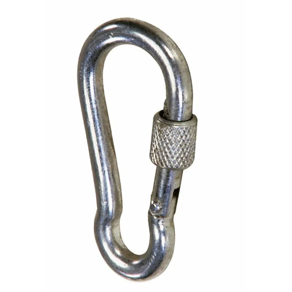 Mousqueton zingué Ø8A mm : 9B mm : 8C mm : 8D mm : 13L mm : 80Longueur (mm) : 80Charge (kg) : 230Diamètre (mm) : 8Matériau : AcierEpaisseur (mm) : 8Caractéristique : Mousqueton à visLot de 5