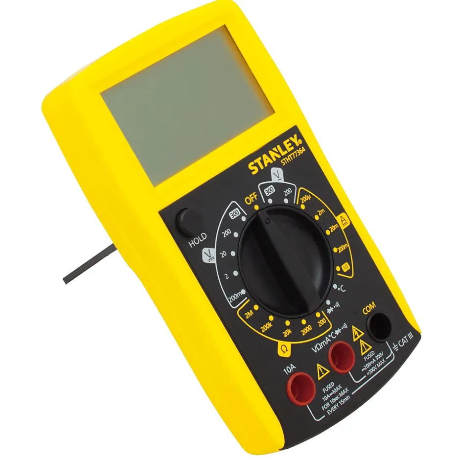 Multimètre Stanley compact, écran numérique, catégorie III — indispensable pour le câblage, les tests de courant, les réparations à domicile et le câblage auto, mesure tension, courant et résistance.