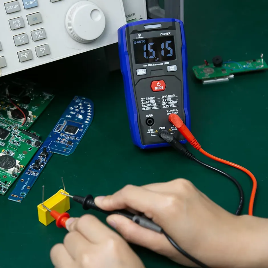 Alliez performance, précision et compacité avec le multimètre numérique DSMTR de Jacobsen. Conçu pour les diagnostics électriques en toute simplicité, cet appareil intelligent offre une sélection automatique des mesures et une lecture rapide grâce à son affichage LCD rétroéclairé. Compatible CAT III jusqu’à 600V, il permet de tester la tension et le courant CA/CC, la résistance, la diode, la capacité, la fréquence, le cycle de service et bien plus encore. Grâce à ses fonctions valeur efficace vraie (True RMS), NCV, MAX/MIN, mémorisation des données et test de continuité, vous disposez d’un outil fiable, même pour des usages intensifs.