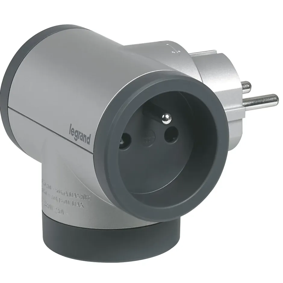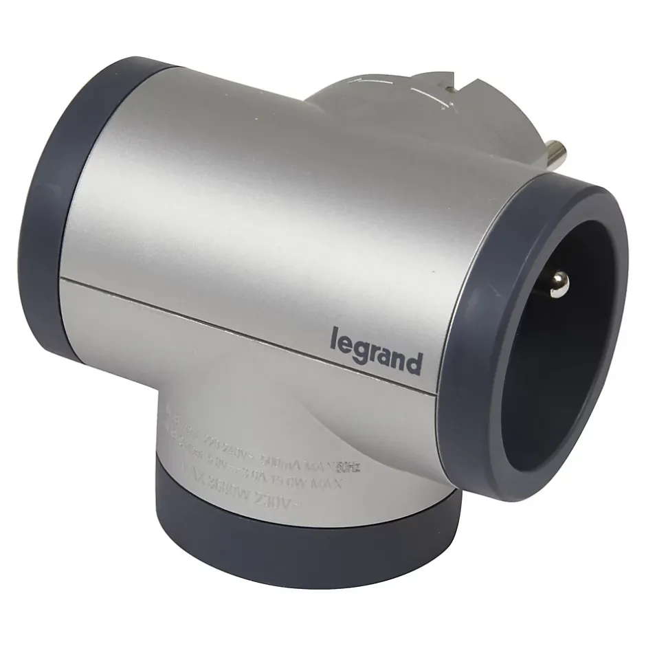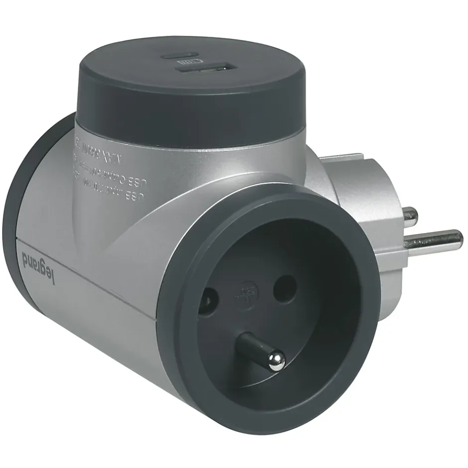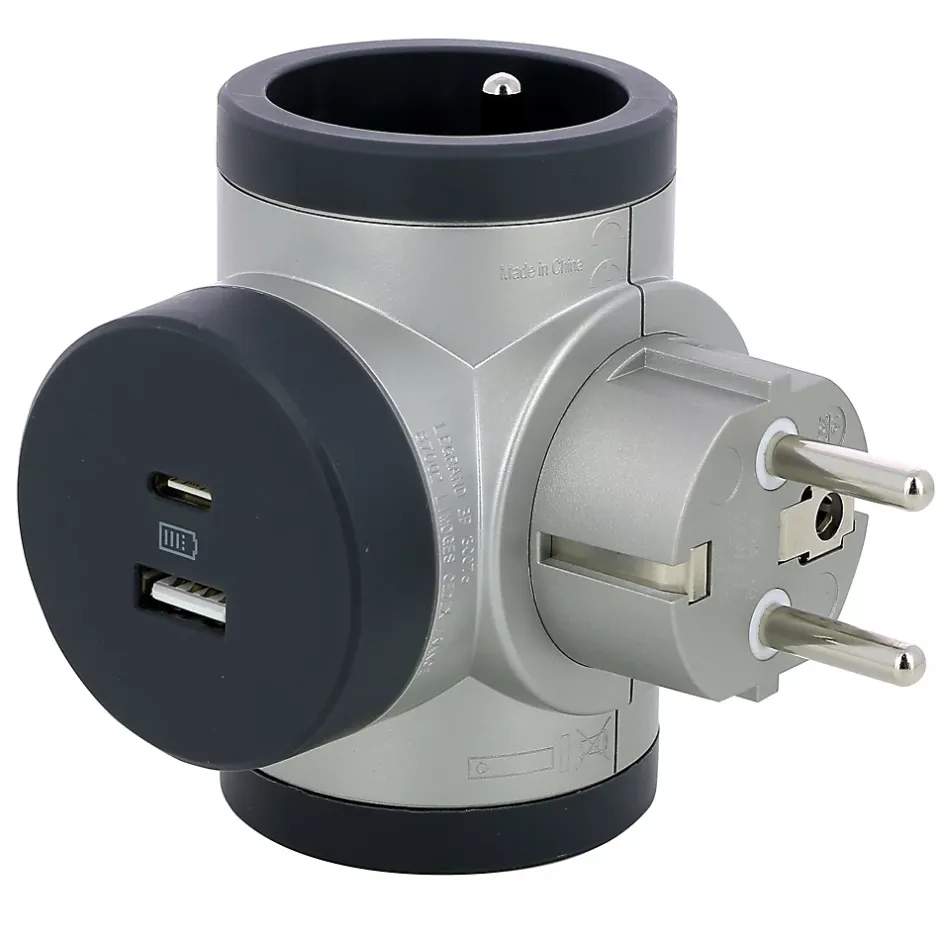 Multiprise 2 prises + 1 x USB-A + 1 x USB-C rotative Legrand aluminium et gris