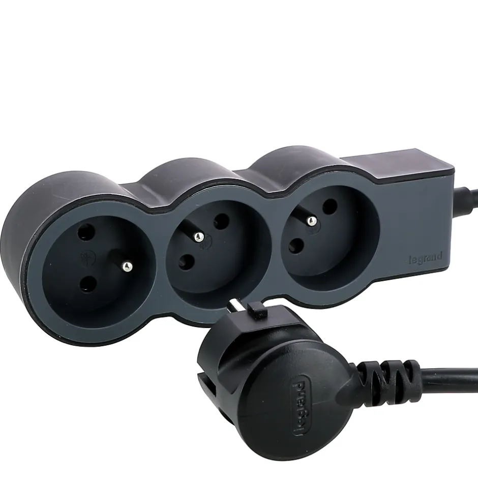 Multiprise 3 prises Legrand noir et gris 1.5 m