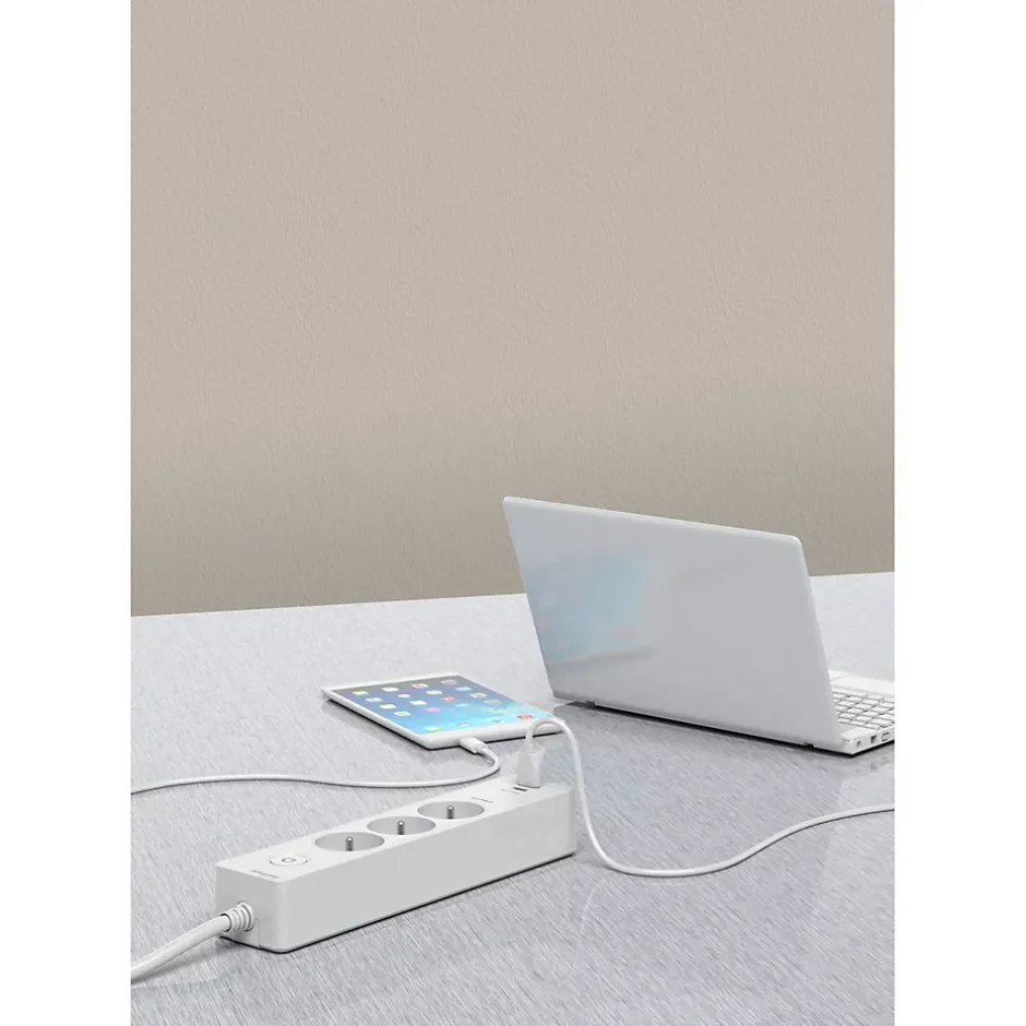 Multiprise 3 prises Schneider Electric Odace blanc 1.5 m