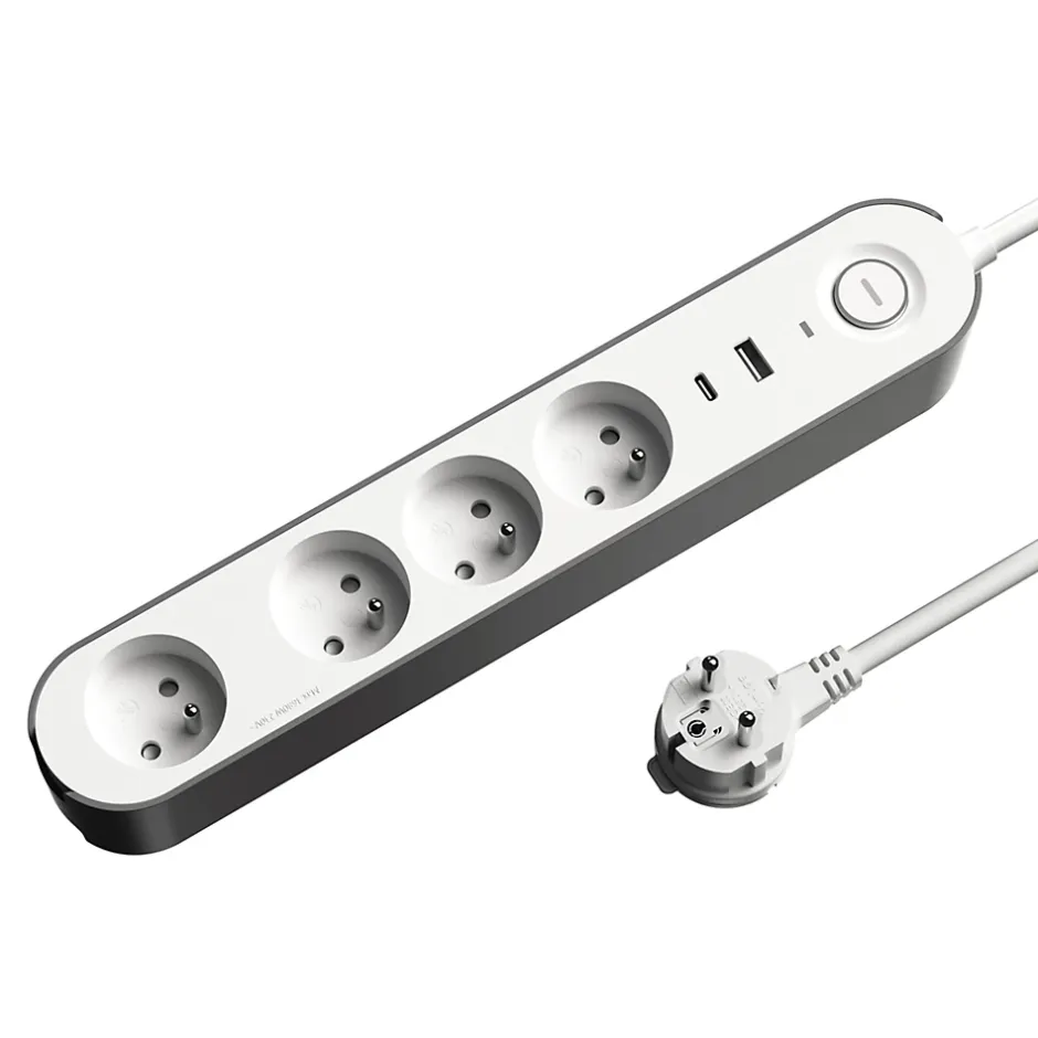 - Notre multiprise quatre prises, équipée d’une protection enfant pour plus de sécurité, permet de brancher des appareils en toute simplicité.