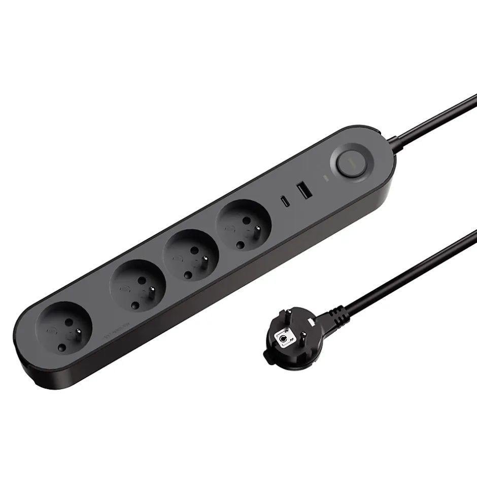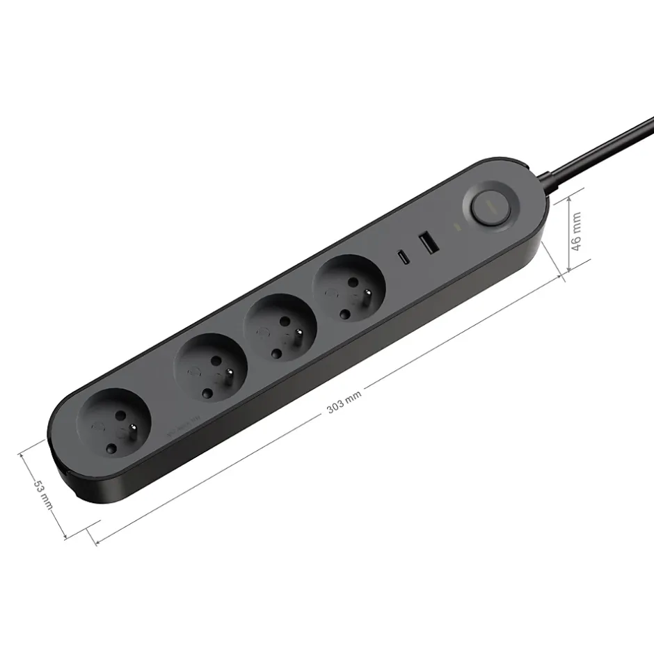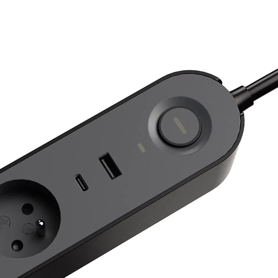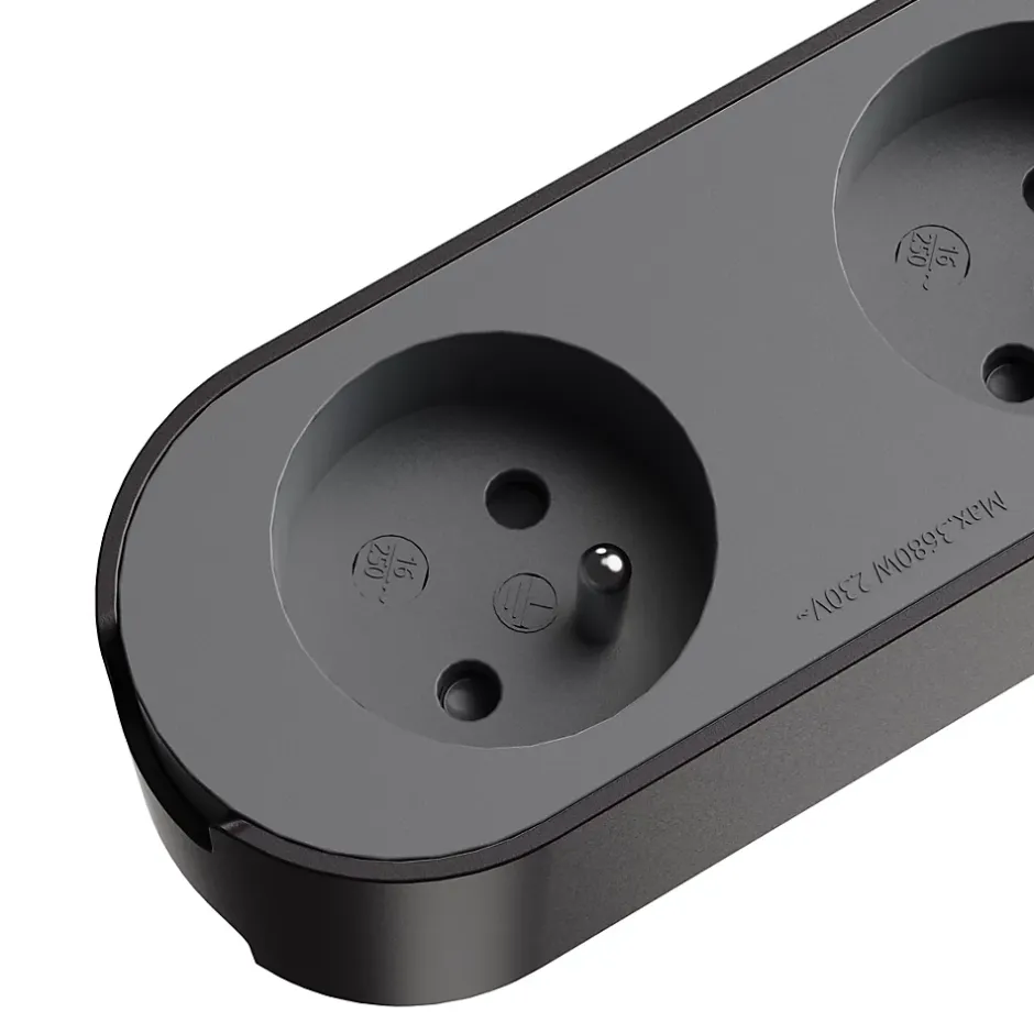 La multiprise Jacobsen 16A permet de brancher jusqu’à six appareils électriques à une seule prise murale. Elle inclut deux ports USB (a et c) et un interrupteur marche/arrêt. Avec des options de montage double, elle se fixe au mur à l’aide de vis (non fournies) ou s’utilise comme prise standard, ce qui la rend adaptée à tous types d’utilisation. De plus, grâce à la protection intégrée contre les surtensions, la multiprise protège tous les appareils branchés, notamment contre les pics de tension, y compris en cas d’orage.