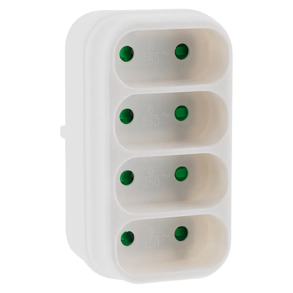 Multiprise 4 prises façade. Couleur(s) : blanc. Intégration en façade murale. Puissance maximale par prise : 6A. Utilisation recommandée : chargeurs, lampes, petits appareils électriques. Discrète et fonctionnelle, idéale pour optimiser l’espace. Adaptée à différents environnements (domestique ou professionnel). Sécurité contre les surcharges et courts-circuits. Solution pratique pour étendre les points de branchement électriques. Installation facile et discrète en façade. Permet de connecter plusieurs équipements simultanément. Fiabilité renforcée grâce aux dispositifs de sécurité