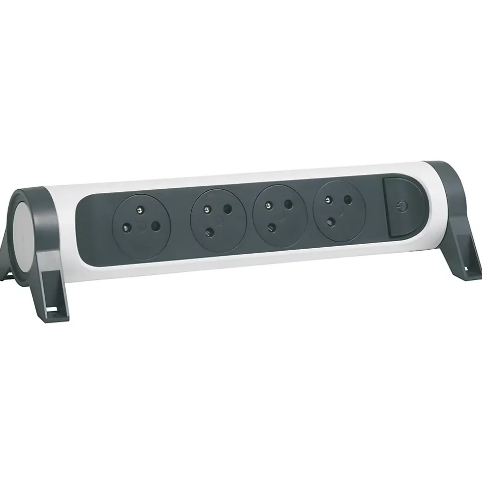 Multiprise 4 prises rotative à fixer Legrand blanc et gris