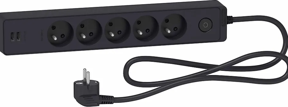 Multiprise 5 prises + 2 usb Schneider Electric Odace anthracite 1.5 m