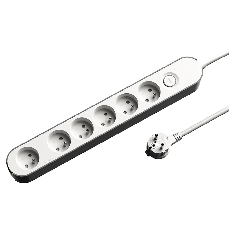 - Notre multiprise six prises, équipée d’une protection enfant pour plus de sécurité, permet de brancher des appareils en toute simplicité.