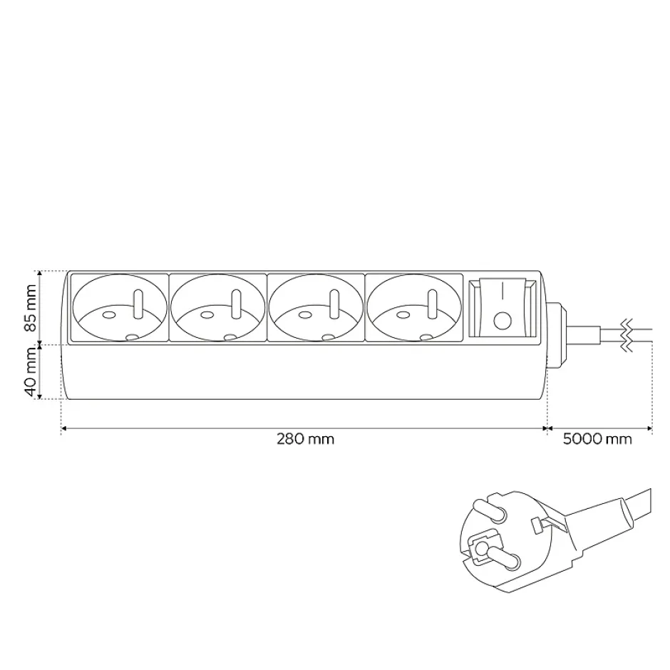 - Type de prise : 4 prises Schuko, compatibles avec la plupart des appareils électriques et électroménagers.