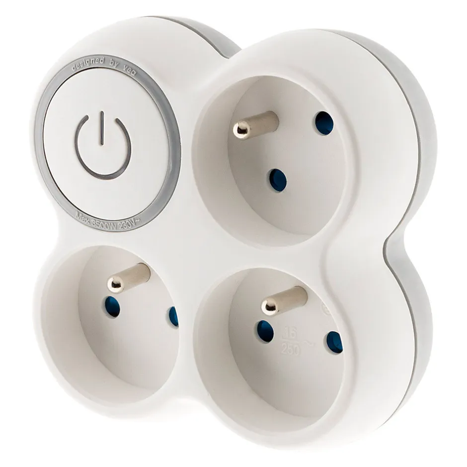 Multiprise triplite + interrupteur. Couleur(s) : blanc et gris. Triplite avec interrupteur marche/arrêt intégré. 3 prises électriques supportant chacune 16A. Fonction interrupteur : permet de couper ou activer l’alimentation de toutes les prises simultanément. Idéale pour usage domestique, professionnel ou en bureau. Système intégré de prévention contre les surcharges et courts-circuits. Conception solide assurant durabilité et sécurité. Permet de gérer facilement plusieurs appareils avec un seul contrôle. Existe avec 2 ports USB ou avec interrupteur (3545411907298/3545411907281). A l’unité ou en lot de 5