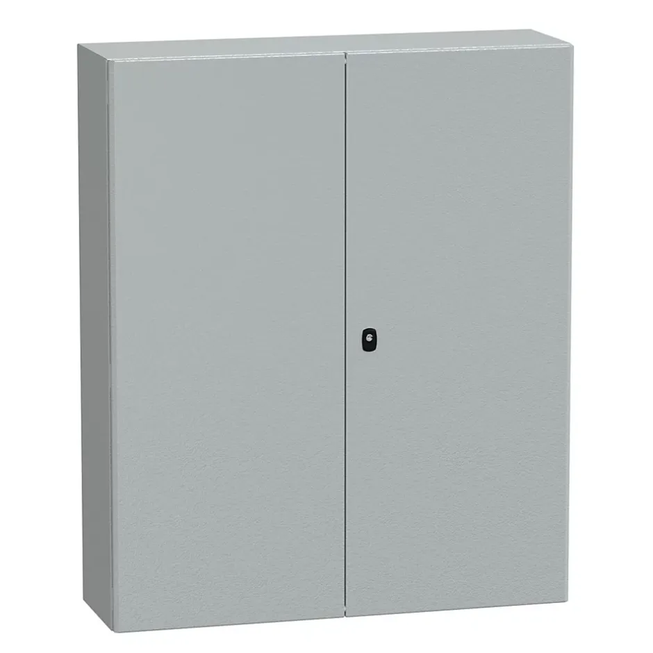 Coffret acier laminé – HxLxP : 1200 x 1000 x 300mm – avec plaque passe-câblesCe coffret métal est étanche IP55, c’est-à-dire qu’il résiste aux jets d’eau à la lance. Cette armoire électrique très robuste résiste aux chocs IK10 .Ce coffret métallique étanche est issu de la gamme Spacial S3D. Il est livré avec avec une plaque passe-câbles à percer pour y intégrer des presses étoupes. Il est également possible d’installer une plaque passe-câbles avec entrée souple sans perçage disponible en accessoireL’armoire NSYS3D121030D est équipée de 2 portes pleines verrouillées par 1 serrure avec fermeture 3 points à empreinte double panneton. Possibilité de remplacer par serrure à clé, disponible en optionLes points clés du coffret S3D Schneider NSYS3D121030DPattes de fixation NSYAEFPFSC à commander séparémentPlaque de montage en optionBarrette de terre disponible en accessoireMontage : mural; sur poteau; sur pied; sur socle