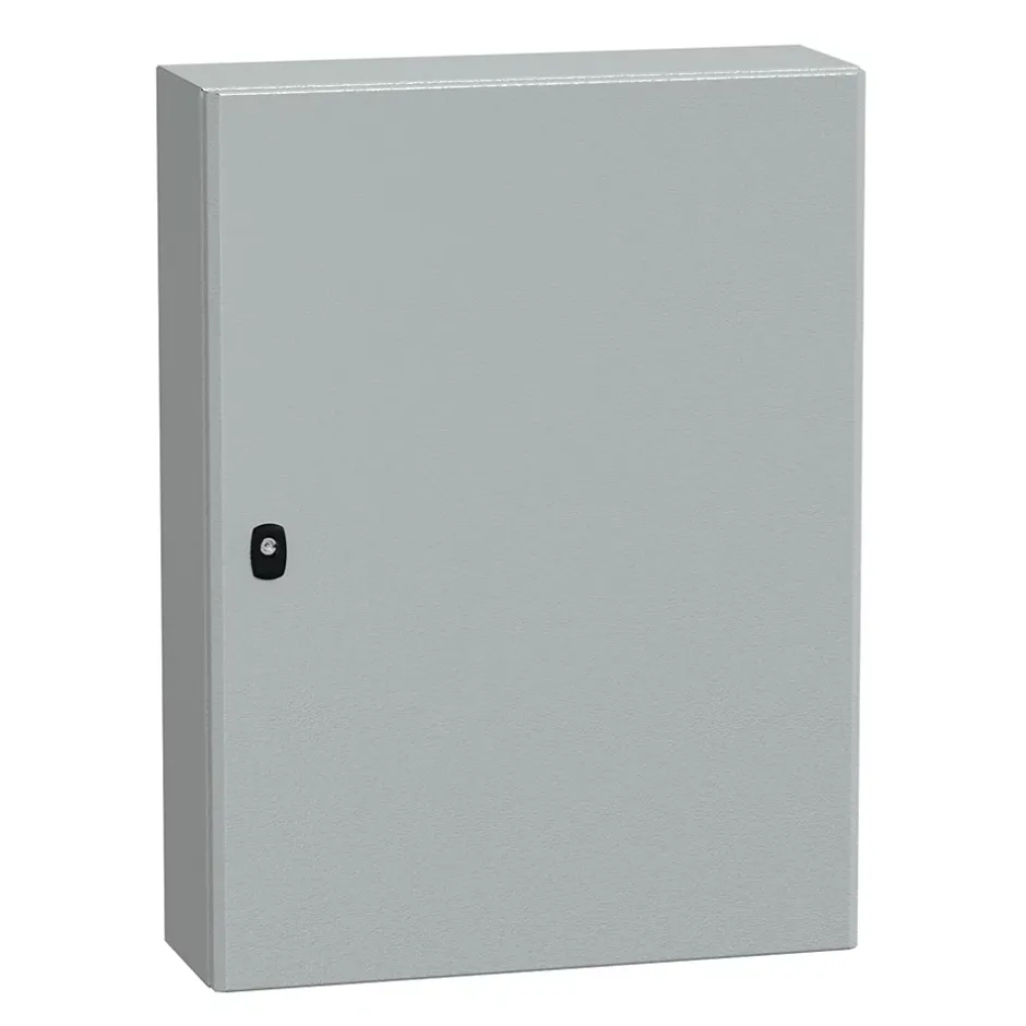 Coffret acier laminé – HxLxP : 800 x 600 x 200mm – avec plaque passe-câblesCe coffret métal est étanche IP66, c’est-à-dire qu’il résiste aux jets d’eau puissants. Cette armoire électrique très robuste résiste aux chocs IK10 .Ce coffret métallique étanche est issu de la gamme Spacial S3D. Il est livré avec avec une plaque passe-câbles à percer pour y intégrer des presses étoupes. Il est également possible d’installer une plaque passe-câbles avec entrée souple sans perçage disponible en accessoireL’armoire NSYS3D8620P est équipée de 1 porte pleine verrouillée par 1 serrure avec fermeture 3 points à empreinte double panneton. Possibilité de remplacer par serrure à clé, disponible en optionLes points clés du coffret S3D Schneider NSYS3D8620PPattes de fixation NSYAEFPFSC à commander séparémentPlaque galva pleine fournieBarrette de terre disponible en accessoireMontage : mural; sur poteau; sur pied; sur socle
