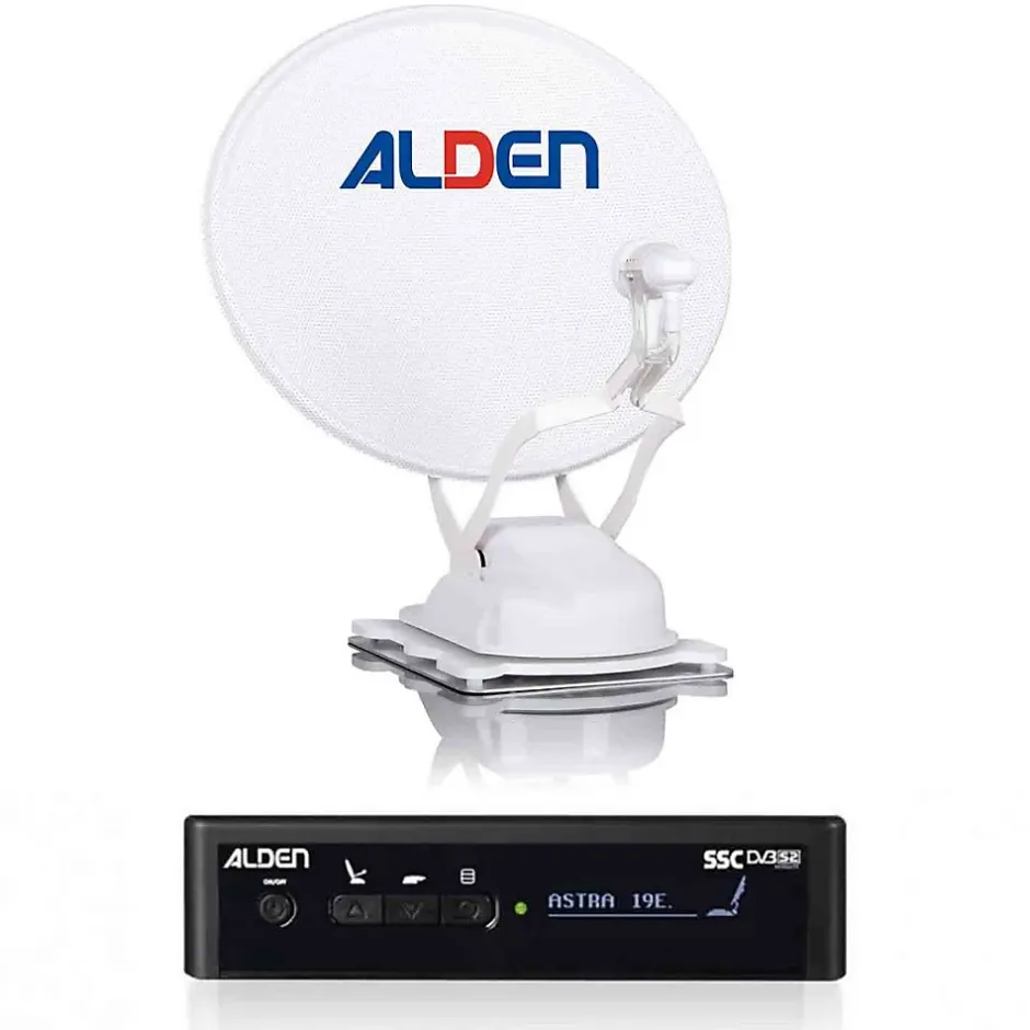 Comme son nom le laisse entendre, ce modèle est une évolution de la plébiscitée Onelight HD. Elle est, grâce à son poids mini (-de 9kg), son encombrement et une hauteur de 15cm repliée, probablement l’antenne la mieux adaptée aux fourgons et vans.Sa conception épurée ainsi que sa mécanique en font également la gamme la moins énergivore du marché. Son système SDP la protège en cas de bourrasque inattendue.Sans complexe, cette version évoluée se pose en concurrente sérieuse de toutes les antennes existantes. Sa conception modulaire est un gage de qualité et de longévité. A un moment où l’on parle d’obsolescence programmée, il est rassurant de voir un produit fabriqué en France conçu pour durer. Si d’aventure, il devenait nécessaire après beaucoup d’années, de devoir remplacer l’un ou l’autre des éléments, cela se fera sans peine toutes les pièces sont facilement interchangeables et disponibles. La parabole multi perforées, par une meilleur résistance au vent, a une courbure qui est le fruit de longues recherches pour optimiser la réception, son diamètre de 60 cm autorise une réception parfaite dans la majeure partie de l’Europe.Long.: 680mmLarg.: 600mmHaut.: 150mmPoids: 7.7kg Module SSC HD :Ce boitier de pilotage permet de choisir jusqu’à huit satellites avec un taux de réussite absolu. Il gère l’antenne en toute simplicité, sans artifices inutiles (G.P.S., boussole, etc.) grâce aux nouveaux composants électroniques asservis par un programme informatique exclusif, développé par les ingénieurs d’ALDEN.Il est l’outil parfait des utilisa