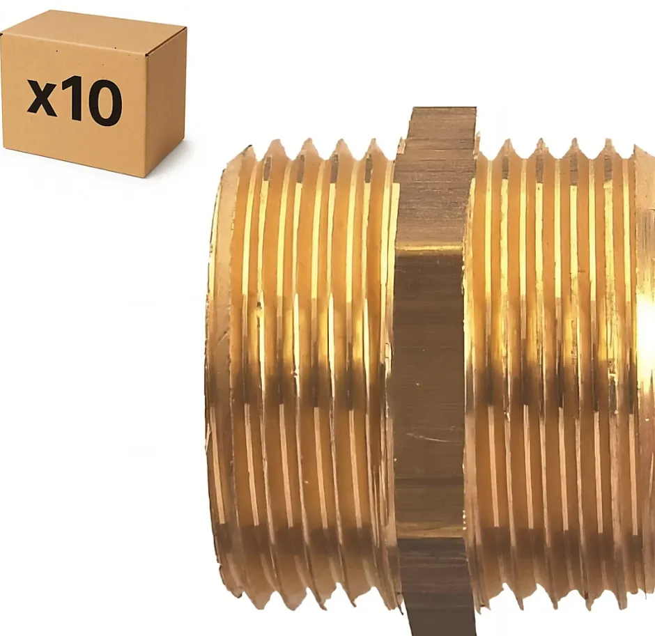 Offre PACK diamètres standards pour installation de plomberie, chauffage, sanitaire : 10 mamelons egaux a visser plomberie male male laiton diamètre 1/2″ (15×21). Référence : D04003B. EAN : 3534989992270