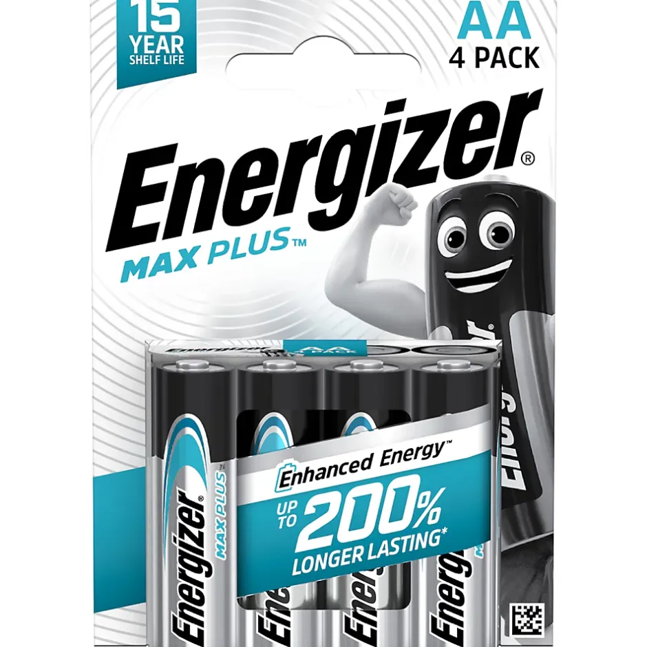 Pack de 4 piles alcalines AA Energizer Max Plus. La plus longue durée de vie : cette pile alcaline la plus durable d’Energizer dure jusqu’à 150 % plus longtemps que la pile alcaline de base Energizer dans les appareils photo numériques. Une énergie fiable : piles alcalines Energizer pour appareils photo, horloges, télécommandes et autres appareils utilisés quotidiennement. Protection contre les fuites : piles AA résistantes aux fuites pour protéger vos appareils contre les fuites et couvertes par la Garantie sans fuite d’Energizer. Fiabilité : chaque pile alcaline Energizer AA ayant une durée de conservation allant jusqu’à 12 ans, elle est prête quand vous en avez besoin. Innovation Energizer : par le fabricant de piles AA les plus durables au monde, Energizer Ultimate Lithium. Emballage 100 % recyclable : L’emballage Energizer est 100 % recyclable, soutient la sylviculture responsable et ne contient aucun plastique, à l’exception des scellés de certains emballages.