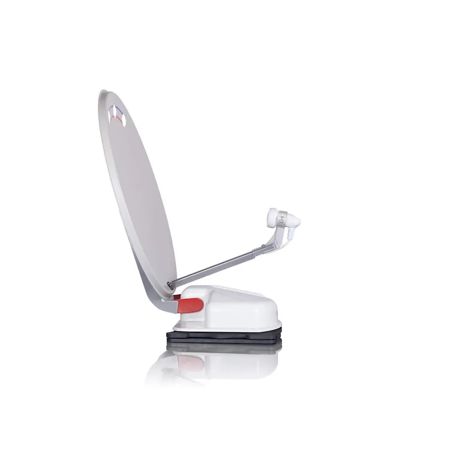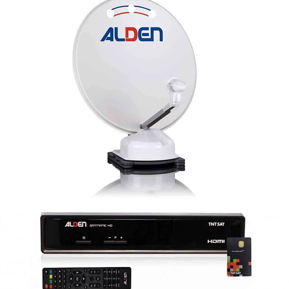 Selon le diamètre et le choix du démodulateur elle comblera les voyageurs au long cours (Maroc, pays Nordiques…).Disponible dans sa version légendaire, la parabole Airpass 85 pour antenne Orbiter (qui n’a pas croisé un jour, un véhicule avec son antenne ouverte, reconnaissable par ses 3 évents qui posent question) est également déclinée dans des versions plus classiques.Sa conception modulaire et sa fabrication française sont un gage de qualité et de longévité. A un moment où l’on parle d’obsolescence programmée, il est rassurant de voir un produit fait pour durer: si il devenait nécessaire après beaucoup d’années, de devoir remplacer l’un ou l’autre des éléments, toutes les pièces sont facilement interchangeables.Long.: 740mmLarg.: 600mmHaut.: 210mmPoids: 8,2kgSATMATIC HD TNTSAT :Non seulement il pilote toutes les antennes automatiques conçues par ALDEN, toutes générations passées ou à venir, mais dans sa version M il est compatible avec toutes les antennes automatiques à pointeur, ou manuelles, quelque soit la marque. Il apporte une assistance de détection sans faille, il est donc inutile de rajouter un détecteur supplémentaire.Sa partie > donne accès à la TNT gratuite via TNTSAT, ainsi qu’à des chaînes étrangères (allemandes notamment.)Véritable centrale multimédia, il autorise le Time Schifting ou l’enregistrement sur disque externe (non fourni) de la TNT.Important : Fait exclusivement pour le camping-cariste et entièrement développé par ALDEN, Satmatic HD est le seul démodulateur intégrant deux fonctions : pilotage et réception. De plus, ALDEN étant le seul maître d’oeuvre, cela confère à ce produit des avantages décisifs, notamment la maîtrise des mises à jour.