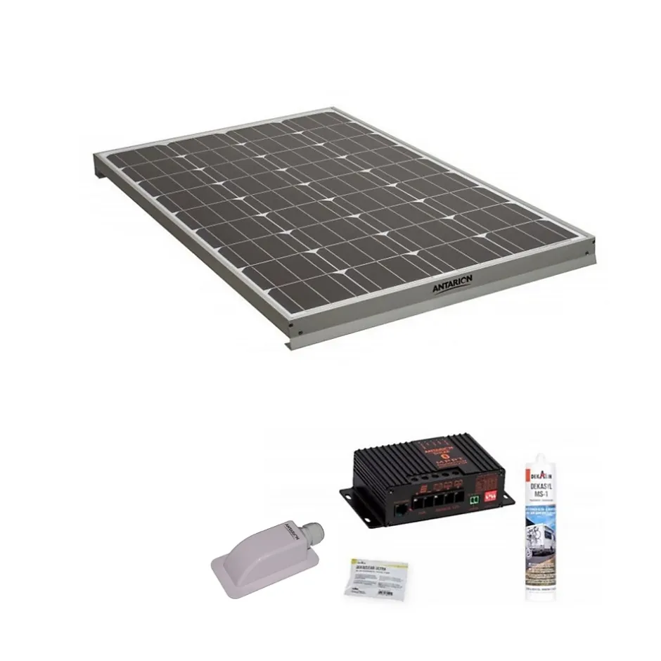 Ce pack comprend :- 1x ANTARION Panneau solaire monocristallin 140W- 1x ANTARION kit de pose +un régulateur solaire MPPT10A BluetoothPanneau solaire Monocristallin 140W :Gamme complète de panneaux solaires monocristallinsPanneau livré seulPattes de fixation en aluminium anodisé striées pour améliorer l’adhérence du panneau lors du collage sur le toitBoîtier de connexion étanche pour un haut niveau de sécuritéDiodes de dérivation haute performance pour minimiser les chutes de puissance en cas de faible ensoleillementProtection en verre trempé spécialement conçu pour résister aux intempériesMontage en série ou en parallèle possible illimitéDimensions du câble: 5mDimensions : 127.8×58.5×6 cmPoids : 8.8kgkit de pose solaire :Le nouveau régulateur MPPT Antarion est doté des dernières évolutions technologiques : grâce à son nouveau micro-processeur ultra-performant, le rendement de charge est supérieur entre 10 et 30% par rapport aux régulateurs standards.Grâce aux différents types de paramétrage possible, il est optimum pour charger les batteries Lithium Fer Phosphate (avec BMS intégré), Gel, AGM ou plomb en respectant les différents types de charges nécessaires et ainsi améliore la longévité des batteries. Son nouveau système innovant pour contrôler les éventuelles surcharges des batteries régule automatiquement la tension.Le kit de pose en blister contient :- Le régulateur solaire MPPT10A Bluetooth- Un passe-toit étanche- Une cartouche Dekasyl MS1- Une lingette DekacleanDescription technique :Dimensions : 28 x 28 x 5 cmPoids : 1,058 kg</l