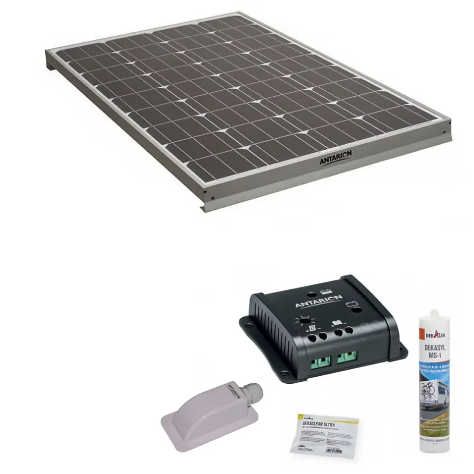 Ce pack comprend :1x Panneau solaire monocristallin 160W camping car1x Kit de pose solaire avec régulateur de charge PWM 160W 10APanneau solaire monocristallin 160W :Panneau livré seulPattes de fixation en aluminium anodisé striées pour améliorer l’adhérence du panneau lors du collage sur le toitBoitier de connexion étanche pour un haut niveau de sécuritéDiodes de dérivation haute performance pour minimiser les chutes de puissance en cas de faible ensoleillementProtection en verre trempé spécialement conçu pour résister aux intempériesMontage en série ou en parallèle possible et illimitéDimensions : 136.8 x 58.5 x 6cmPoids : 9.4kgLe kit de pose en blister contient :Le régulateur solaire SC10Un passe-toit étancheUne cartouche Dekasyl MS1Une lingette DekacleanDimensions : 28 x 28 x 5 cmPoids : 0,87 kgCaractéristiques du régulateur :Régulateurs de type PWM avec mode désulfatation pour les batteries acidesPuissance solaire de 170W maximumDimensions : 11,3 x 10,5 x 3 cmPoids : 0,15 kg