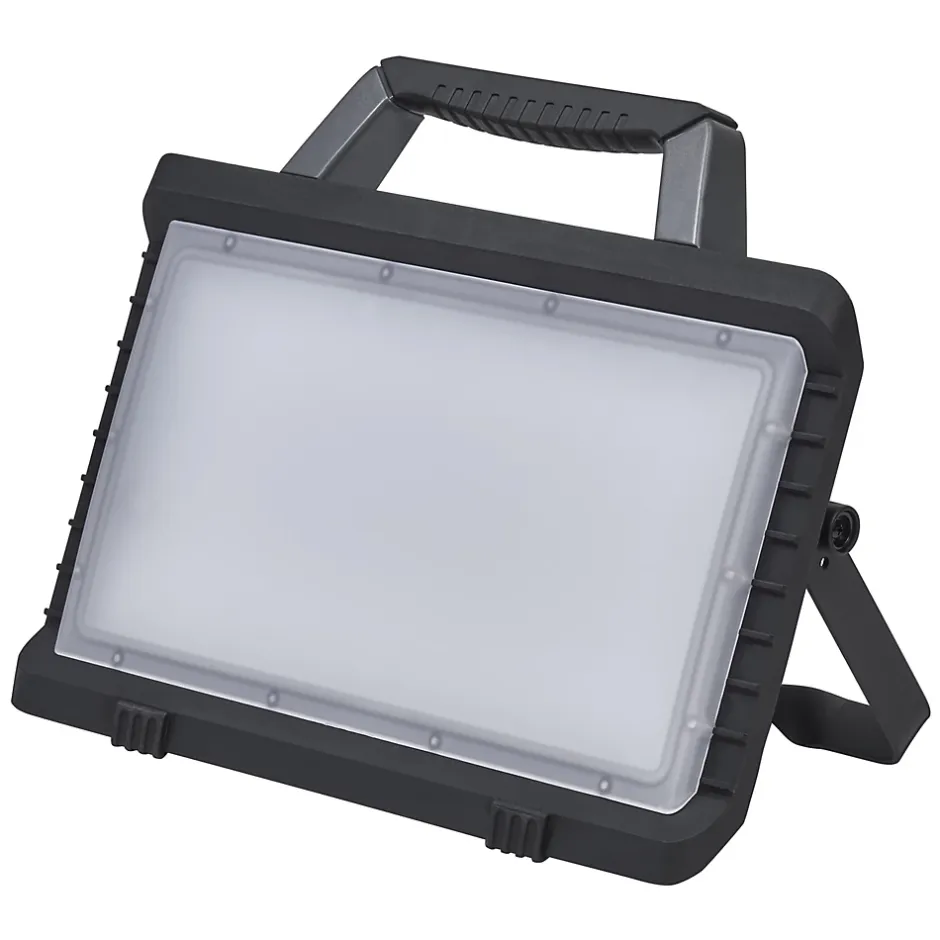 Lampe de travail mobile alimentée par batterie dans la classe économique. Caractéristiques du produit: Projecteur de chantier à tête pivotante. Lampe de travail portable alimentée par batterie. Batterie rechargeable via un câble USB. Avantages du produit: Fonction de charge USB à partir de la fonction de banque d’alimentation intégrée. Indépendant de l’alimentation sur secteur grâce à la batterie. Zones d’application: Rénovation. Garages. Ateliers. Sous-sol. Technique / Accessoires: Câble de chargement USB-C de 60 cm. Conseils de sécurité: Afin de réduire le risque d’étranglement, le câblage flexible connecté à ce luminaire doit être fixé efficacement au mur si le câblage est à portée de main.. Si le compartiment à piles (le cas échéant) ne se ferme pas correctement, cessez d’utiliser le produit et tenez-le hors de portée des enfants. Si vous pensez que des piles ont pu être avalées ou placées à l’intérieur d’une partie du corps, consultez immédiatement un médecin.. A éviter : Température ambiante maximale : +35 °C. Remplacement d’une batterie par un type incorrect qui peut neutraliser la sécurité (par exemple, dans le cas de certains types de batteries au lithium). Altitude pendant le fonctionnement : 2000 m. Jeter une batterie au feu ou dans un four chaud, ou écraser ou couper mécaniquement une batterie, ce qui peut entraîner une explosion..