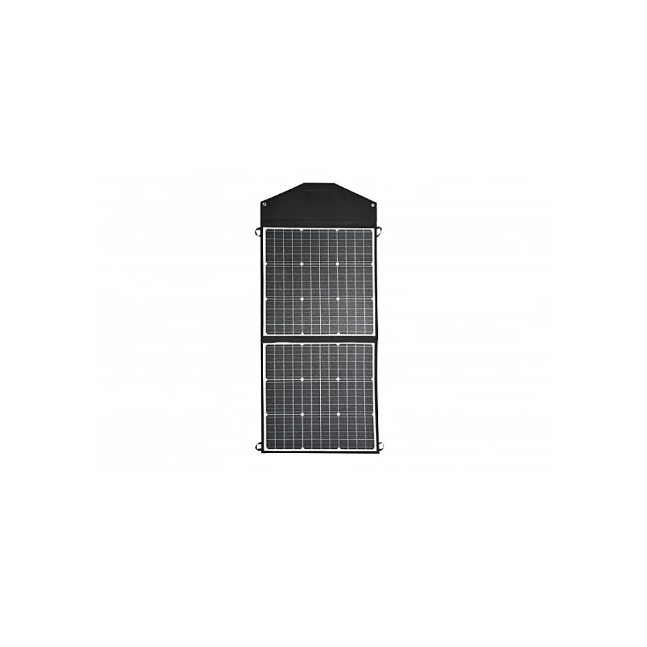 Panneau solaire de 2 x 55W (110W) portable et pliable ANTARIONLéger et transportable facilement grâce à sa housse de transport équipée d’une poignée, il est très facile et rapide de l »installer en quelques secondes partout où vous en avez besoin pour capter l’énergie solaire.Compatible pour charger tout type de batteries de toutes marques, il s’adapte à la plupart des stations d’énergies portable grâce à ses connectiques MC – XT60.Il est également possible de le coupler à un régulateur de charge type PWM ou MPPT pour recharger des batteries auxiliaires Acides, AGM, GEL ou Lithium.Durable, résistant à la poussière et à lêu grâce à une protection IP68 et un film ETFE, ce produit peut être utilisé partout en camping, en randonnée ou en utilisation domestiquePanneau solaire garanti 2 ansTension / Intensité nominale = 20.9V / 5.27ADimensions une fois déplié (cm) 130.5 x 50.5 x 4.5Dimensions une fois plié (cm) 56.5 x 55 x 1.5Poids total avec accessoires et sac de transport : 4.5kgLivré avec câbles solaires de 5m équipés connecteurs MC4 (compatible avec des adaptateurs MC4 – XT60)