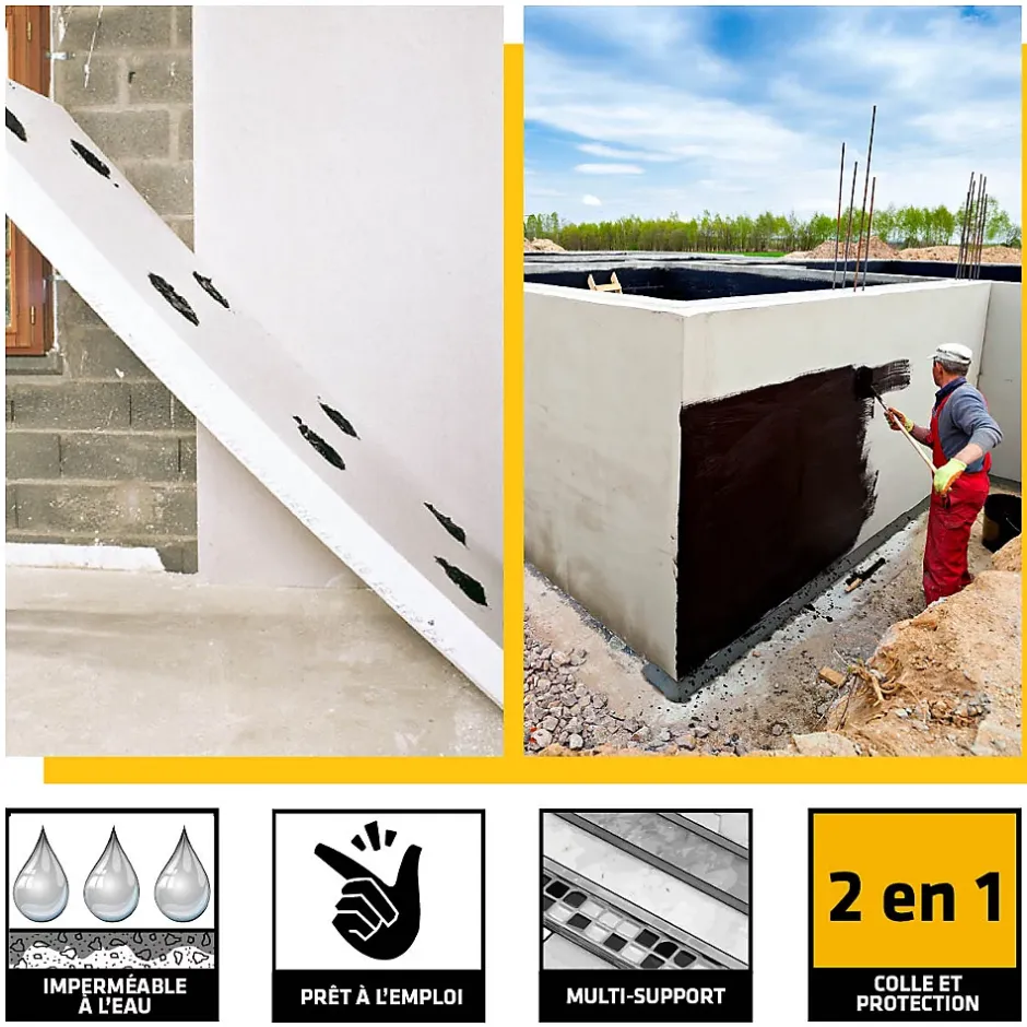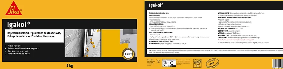 Igakol 5kg. Pâte bitumeuse pour collage, imperméabilisation et protection des fondations : Collage en paroi des panneaux en isolation thermique dans le bâtiment: panneaux en polystyrène expansé, fibre de verre, laine de roche, mousse de verre et Imperméabilisation et protection des fondations.