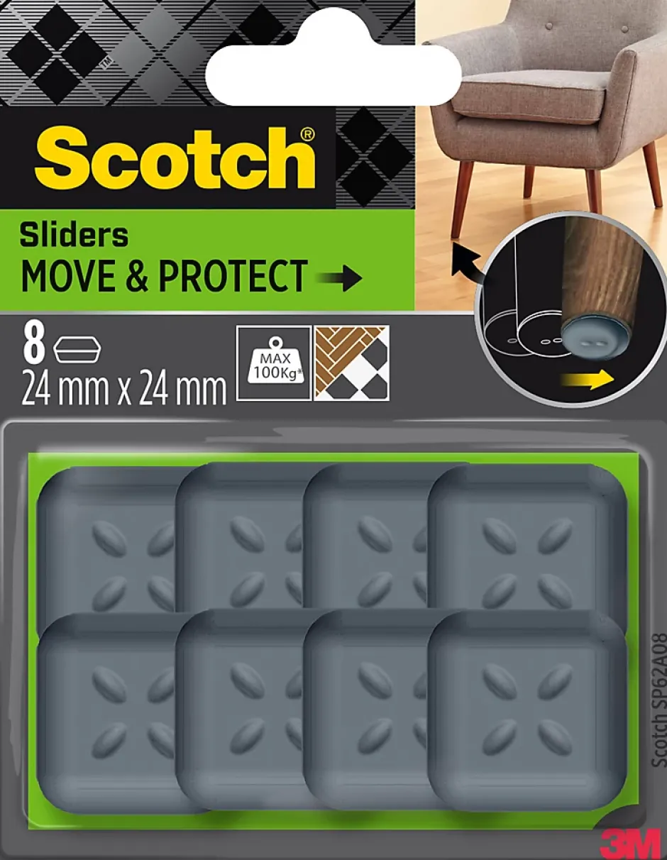 Patin glisseur adhésif carré gris Scotch ø24 mm, lot de 8