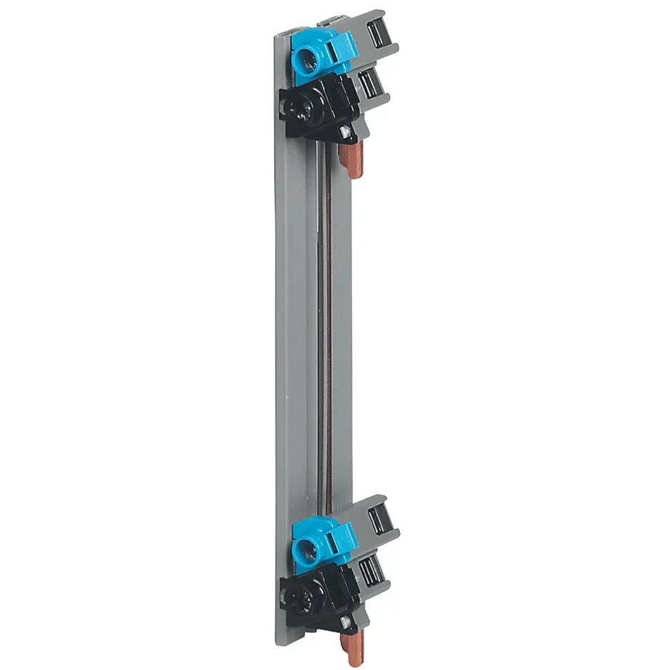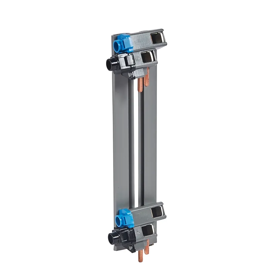 Entraxe entre rails 125 mm. Permet d’alimenter directement plusieurs rangées d’un tableau électrique sans repiquage. Pour coffret 2 rangées