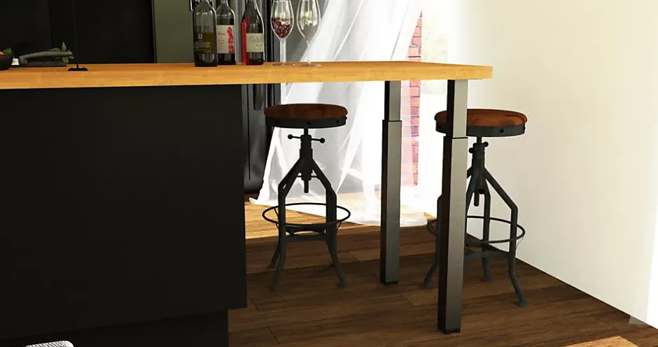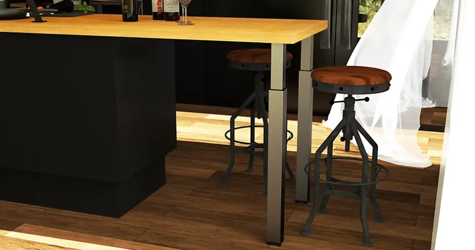 Pied de plan de travail carré en acier époxy nickelé brossé Cime Zoom H. 70 / 110 cm